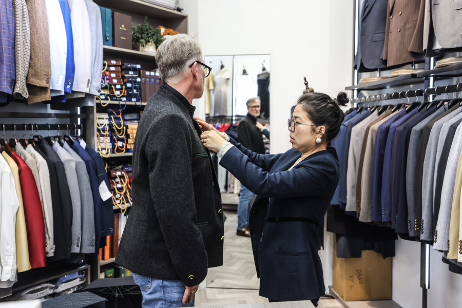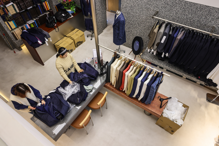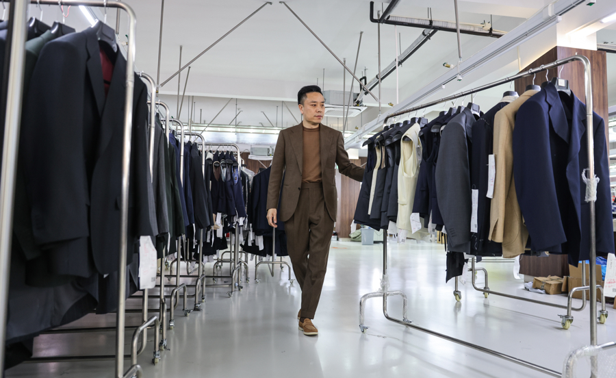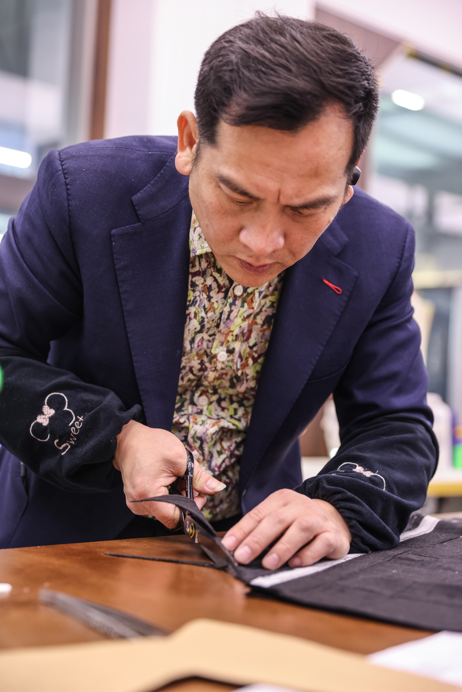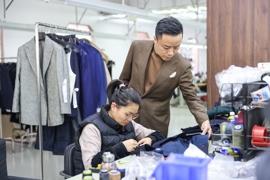 在几十公里外的昆山,他还创办了自己的定制工厂,五年间已发展至近五十名员工——既配备数字化设备提升效率,又由资深裁缝领衔把控全麻衬工艺。