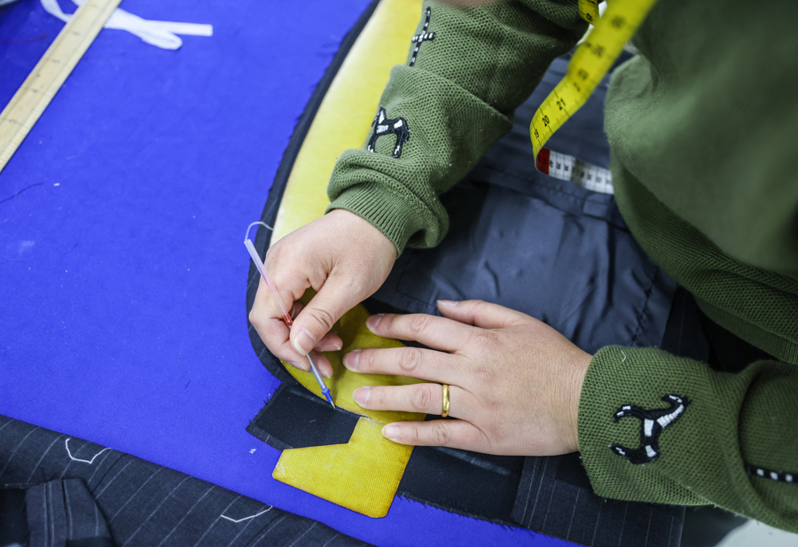 在毛永康位于昆山的定制工厂内,资深“老法师”为每件定制服装倾注自己的手艺和心血。