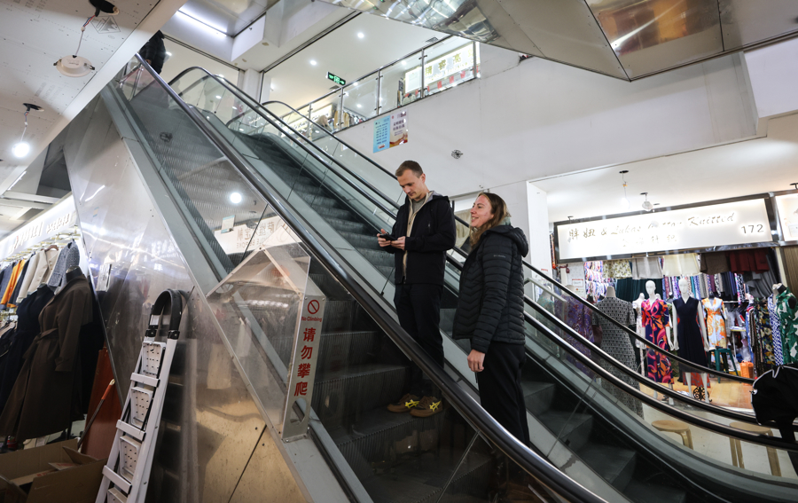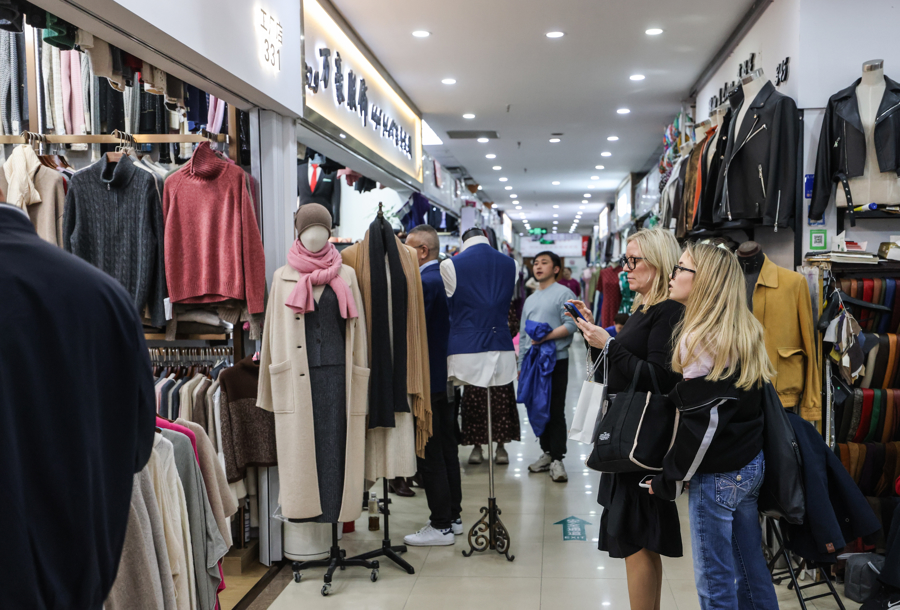 每天前来南外滩轻纺面料市场的外国游客络绎不绝。