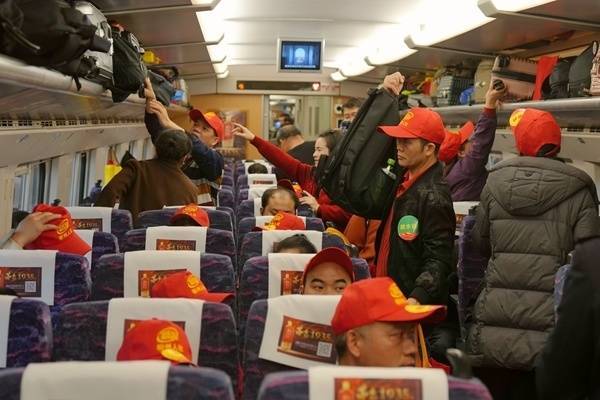 赴粤务工旅客在车厢内陆续就座。丁明宇摄