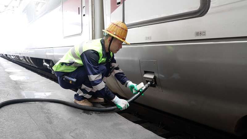 “这节车厢吸污灯已灭。”短短几分钟,一节车厢作业完成。他先关列车排污阀,再关吸污管阀门,仔细确认关好后,合上吸污盖板,将吸污管收回放好。多年的工作沉淀,让每一步都严谨有序。